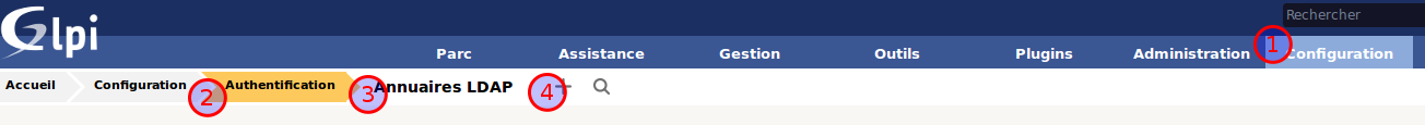 - Dans GLPI → Configuration → Authentification → Autre méthode d’authentification