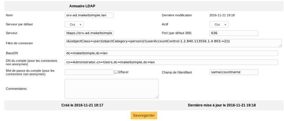 Intégration au serveur LDAP/Active Directory