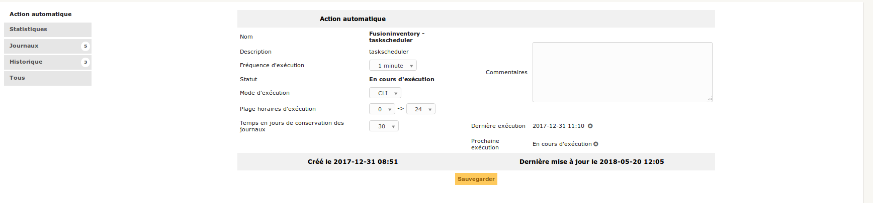 - Voir dans Configuration → Action automatique → Tasksheduler si