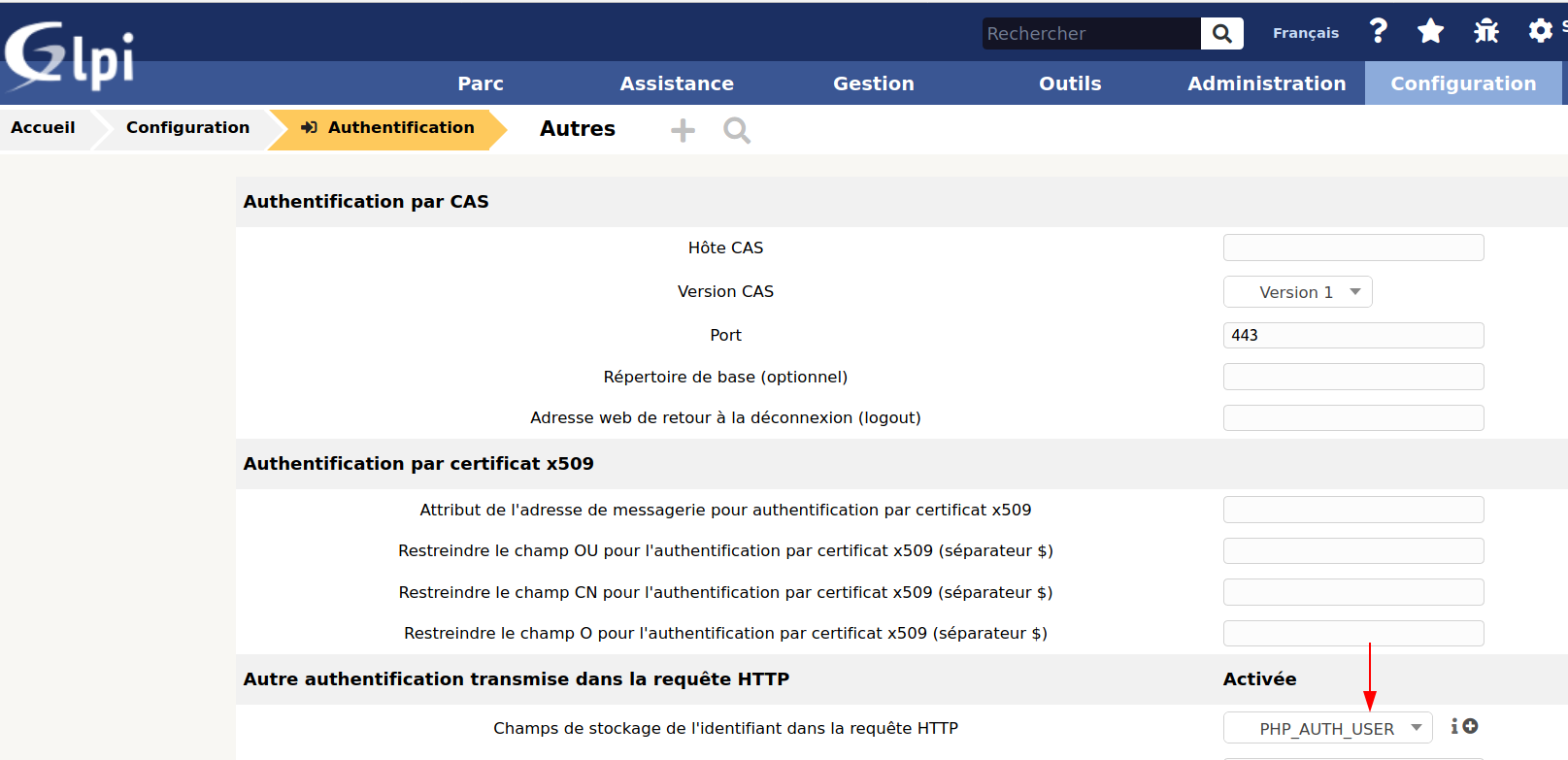 - Champs de stockage de l’identifiant : PHP_AUTH_USER