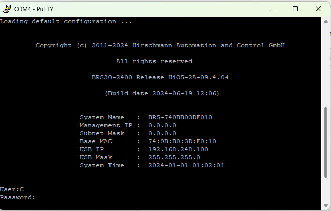 En se connectant en USB (port série 38400bps) on peut voir dans putty l'adresse IP USB et Management