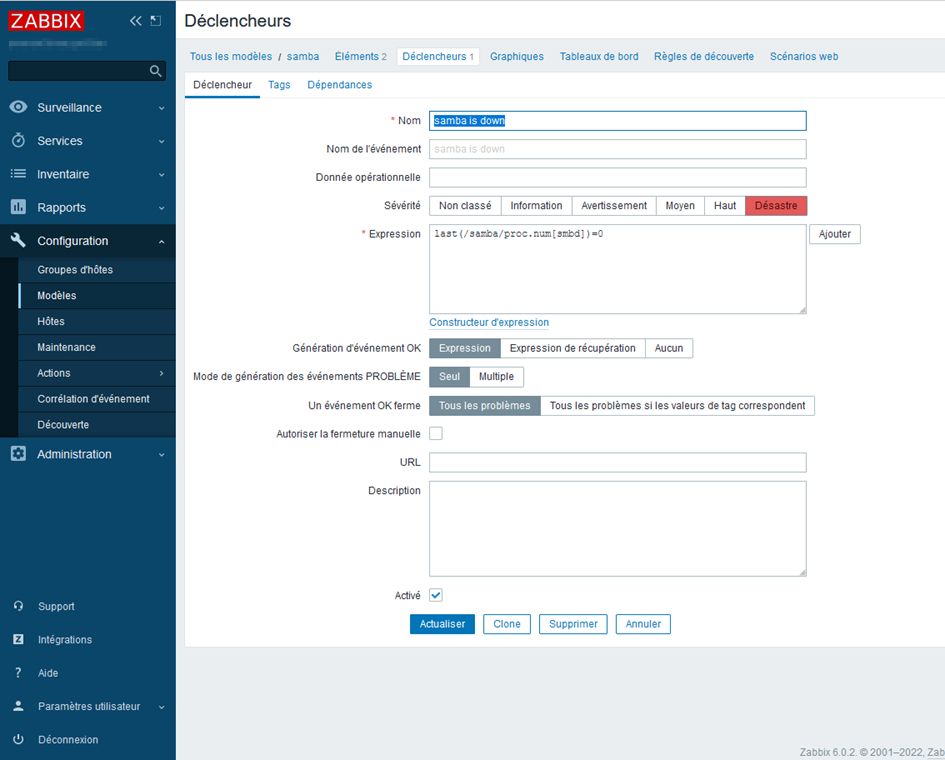 Zabbix: Monitorer un service