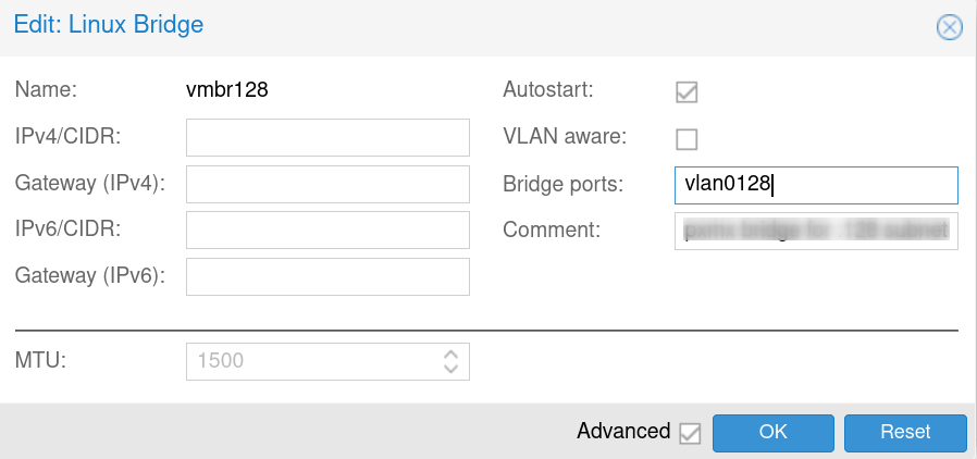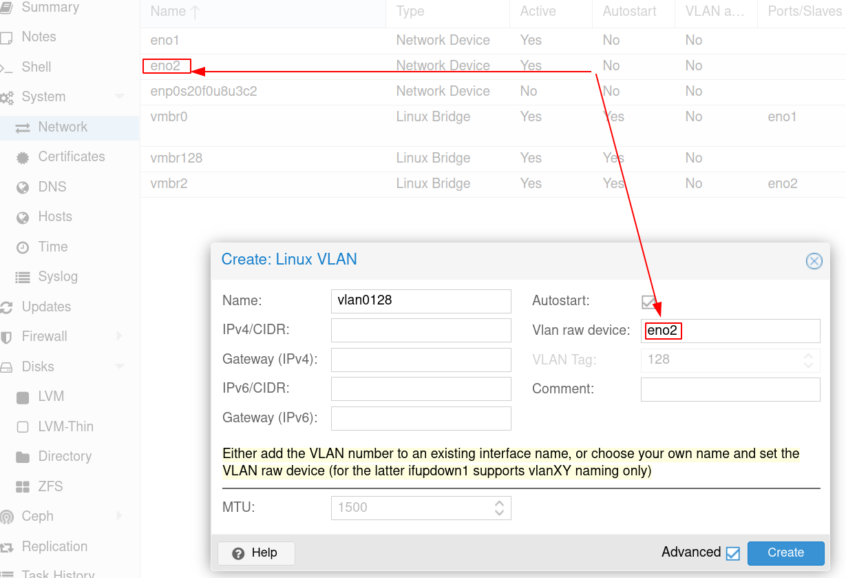 - Lui donner un nom qui identifiera son numéro de VLAN (ex vlan0128 = vlan 128)