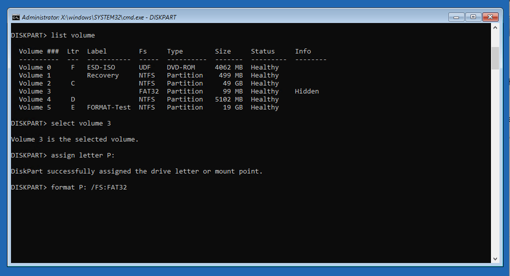- Installer les fichiers de démarrage EFI à partir du répertoire windows