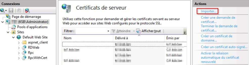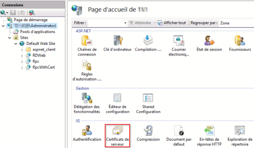 Sélectionner le nom du serveur puis choisir “Certificats du serveur”