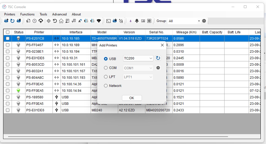 Printer → Add printer