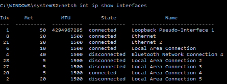 netsh int ip show interfaces