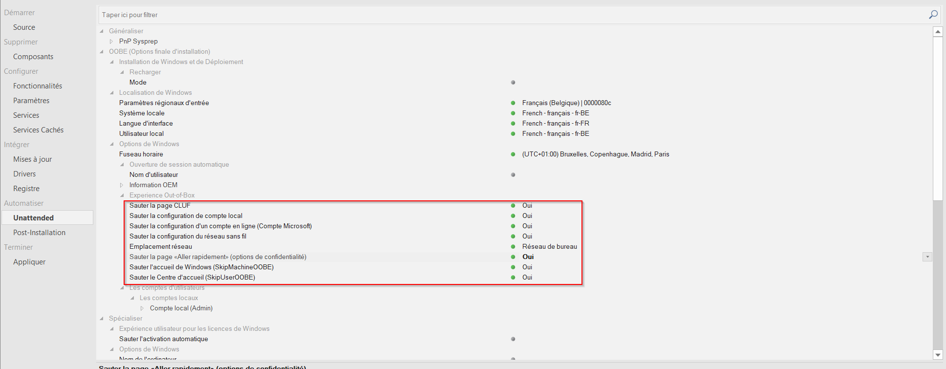 - OOBE > Options de Windows > Experience OutOfThebox
