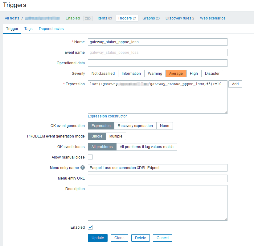 Zabbix: travailler avec une clé JSON (exemple avec monitoring gateway sur opnsense)