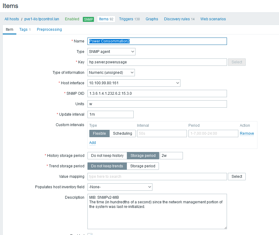 Zabbix: mesurer la consommation d'un HP Proliant DL380 Gen9