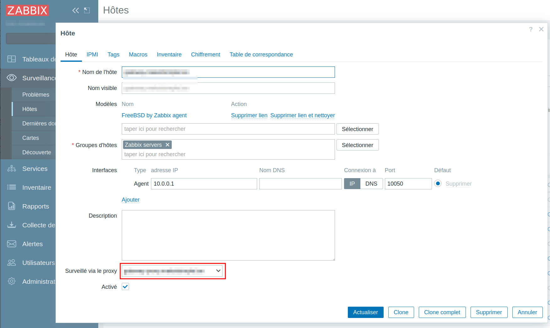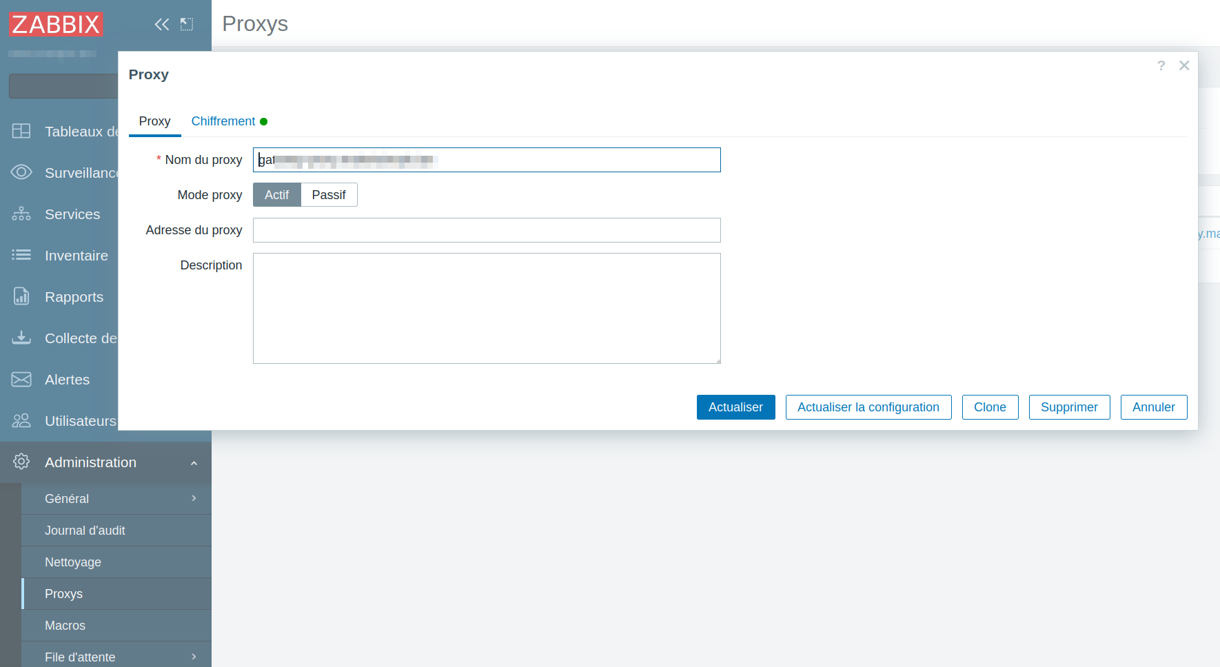 Configuration du proxy dans Zabbix